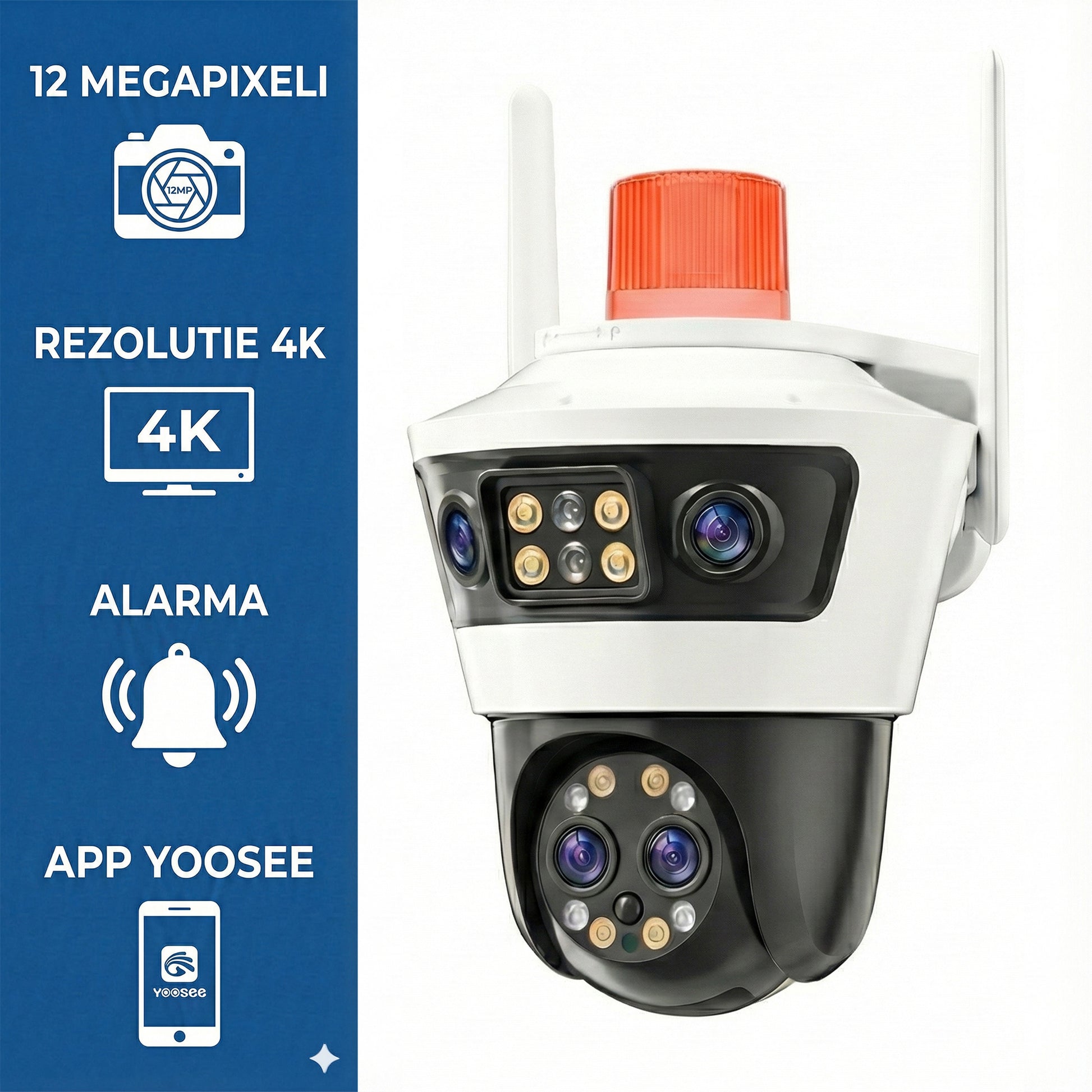 - ✔ Calitate Video Ultra-Clară (12MP): Senzorul CMOS și lentilele duale (3.6mm + 6mm) captează imagini detaliate, ideale pentru identificarea fețelor.