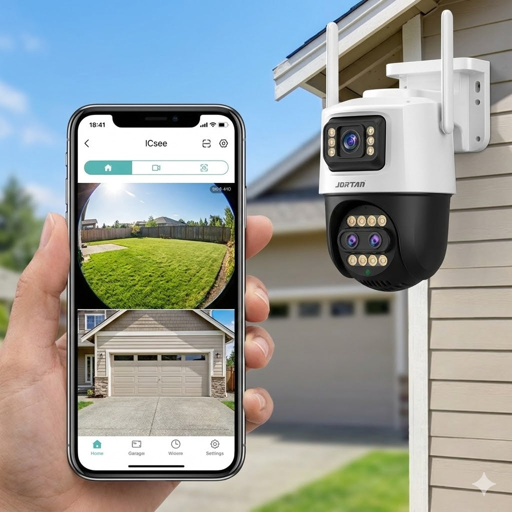 Jortan 9999 PRO este soluția supremă pentru monitorizarea exterioară, combinând puterea a două lentile pentru o imagine de ansamblu perfectă și detalii zoomate. Cu o rezoluție de 9 Megapixeli și diafragmă luminoasă (f1.5-3.6), această cameră captează imagini cristaline zi și noapte. Controlată prin populara aplicație iCSee, oferă funcții avansate precum urmărirea inteligentă a subiectului și alerte instantanee, asigurând liniștea căminului tău.